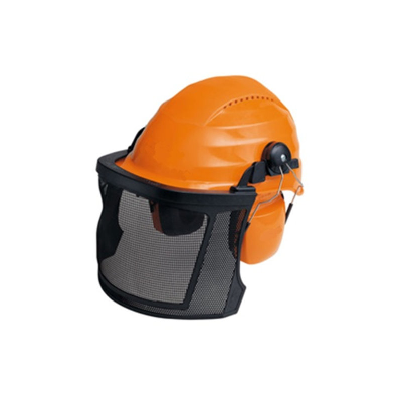 Safety helmet c/w net visor and ear muff. Safety glasses are recommended to wear as well.