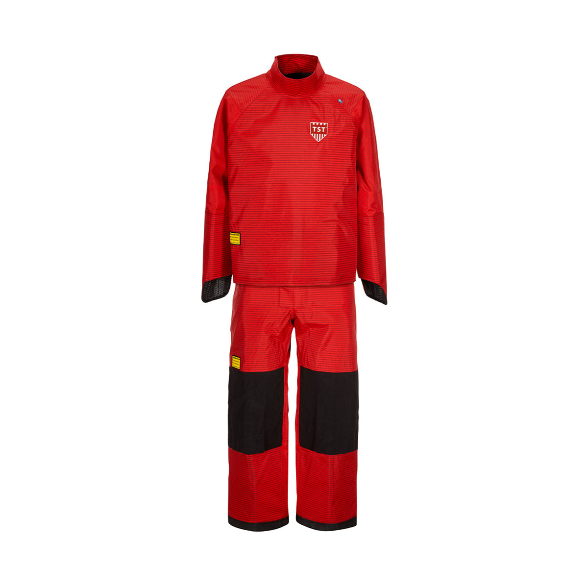 Safety jacket and trousers with built-in protection in most areas. Jacket has integrated hand protection and the high trousers has adjustable shoulder support.